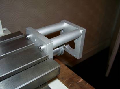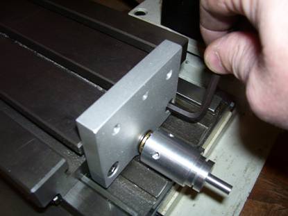 Fit table mounting plate to leadscrew with the counter bores for the cap screw heads NOT facing the vice. See photo 4 below.